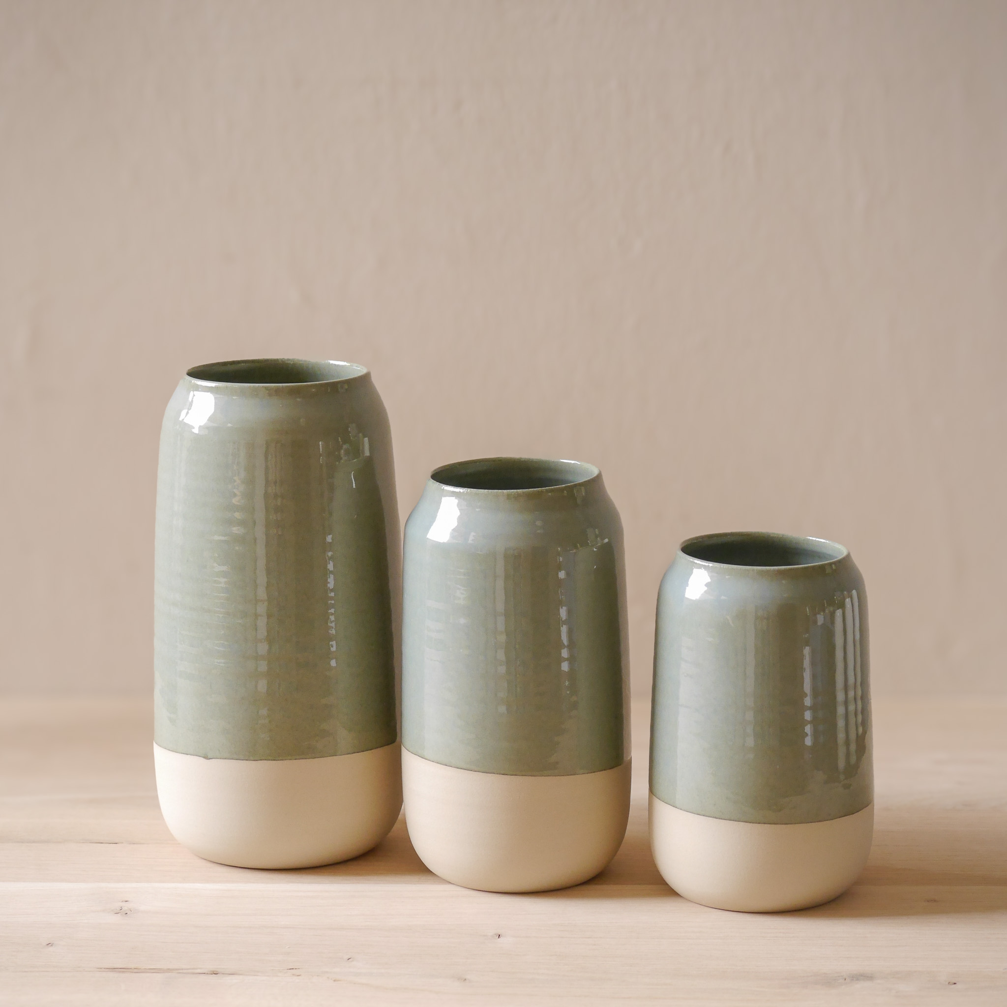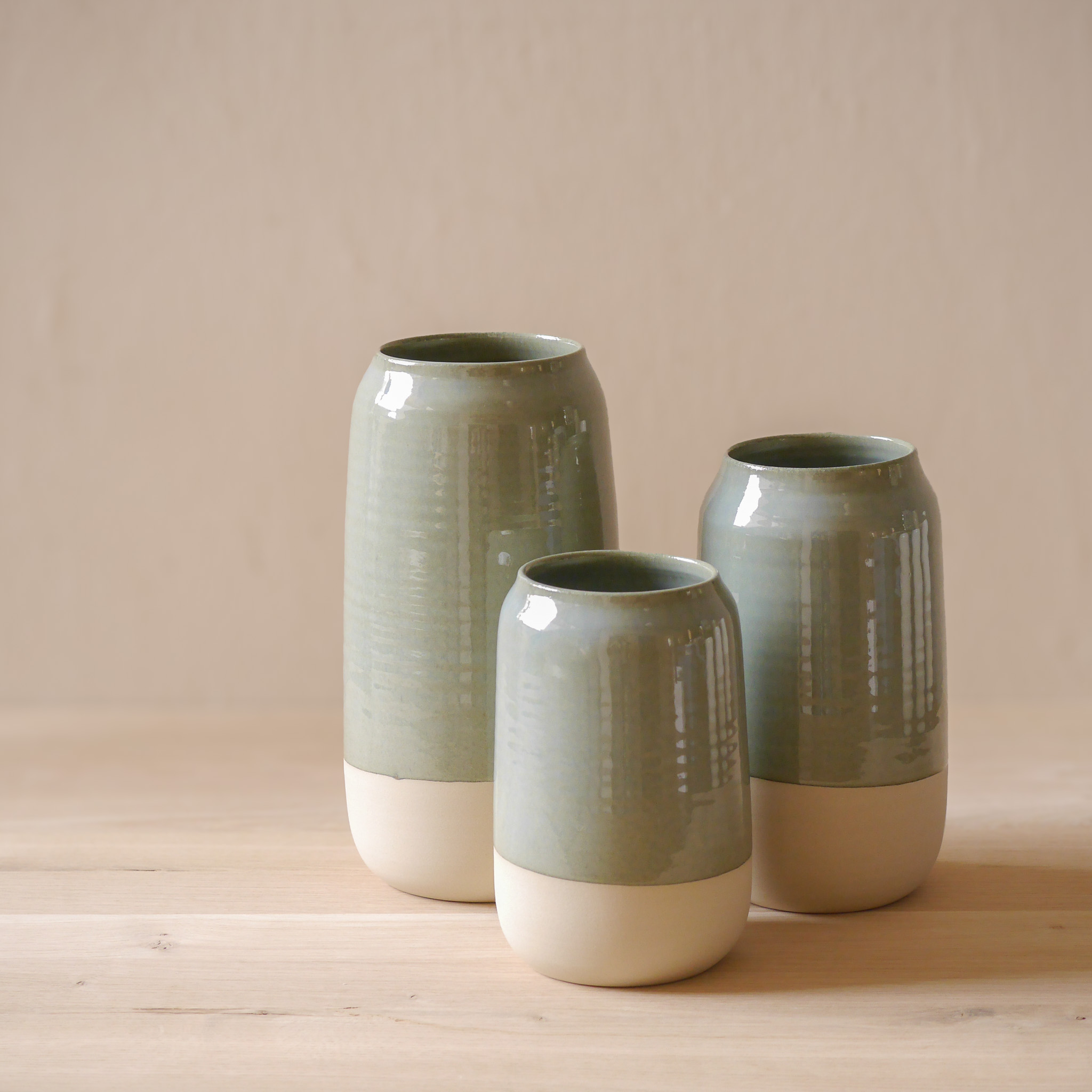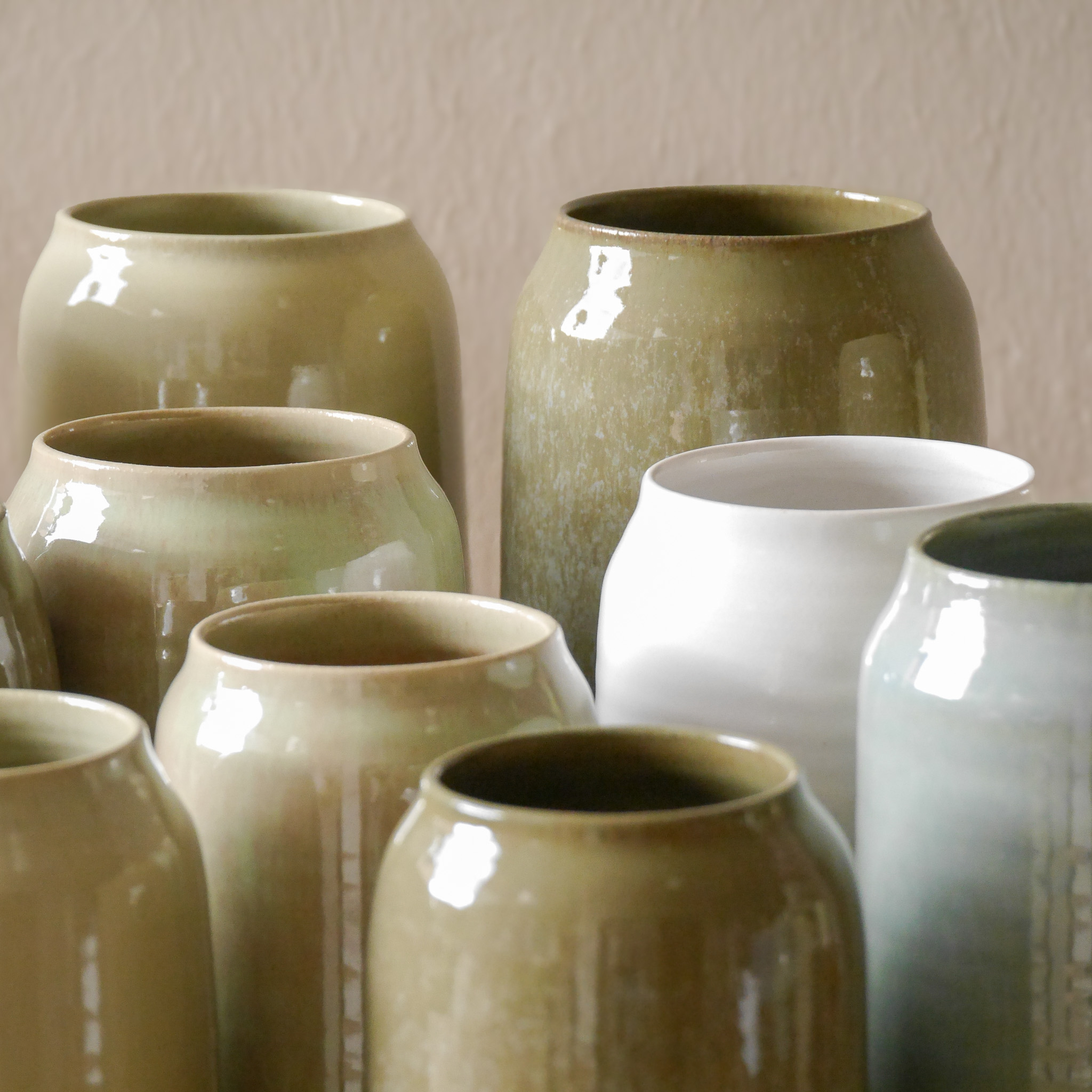 Der untere Teil ist naturbelassen und bildet somit einen Kontrast zu den wunderschönen erdigen Glasurfarben.